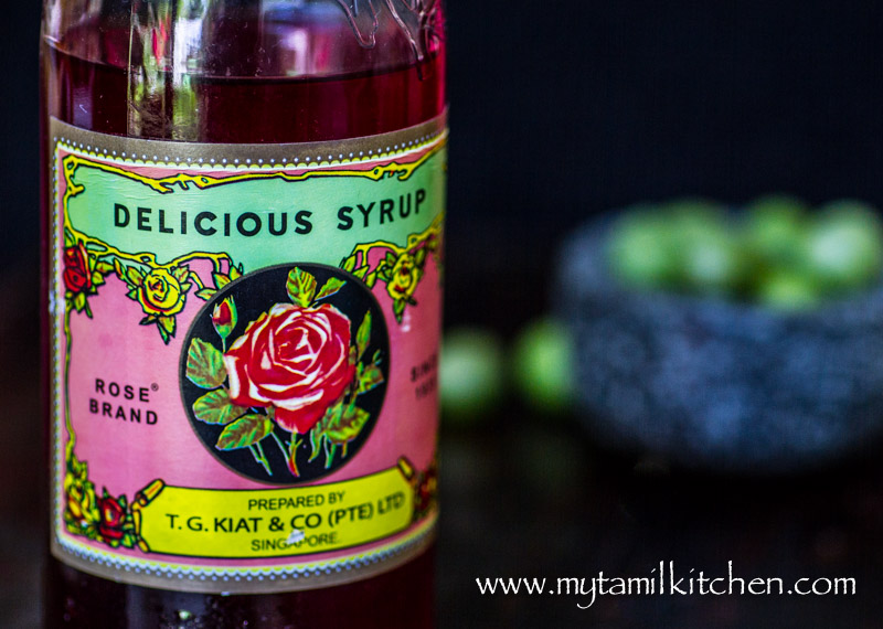 The main ingredient is Rose Syrup and the instructions on the bottle say to mix 1 part rose syrup with 6 parts milk. If it’s not sweet enough – add more Rose Syrup. If too sweet for you – add more milk. Easy!