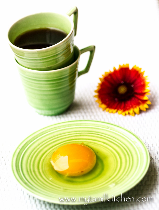 Keep beating the egg and add the still very hot coffee while beating the egg