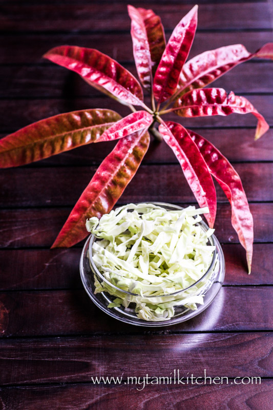 Last year I posted a recipe for varai made with green leafy veges. You can also make carrot varai, cabbage varai and hibiscus leaf varai.